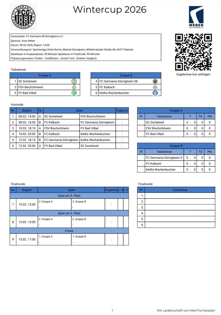 Wir freuen uns auf spannende Spiele und zahlreiche Zuschauer.Der diesjährige Germania Wintercup der Senioren findet in Kürze statt und wird im Freien ausgetragen.